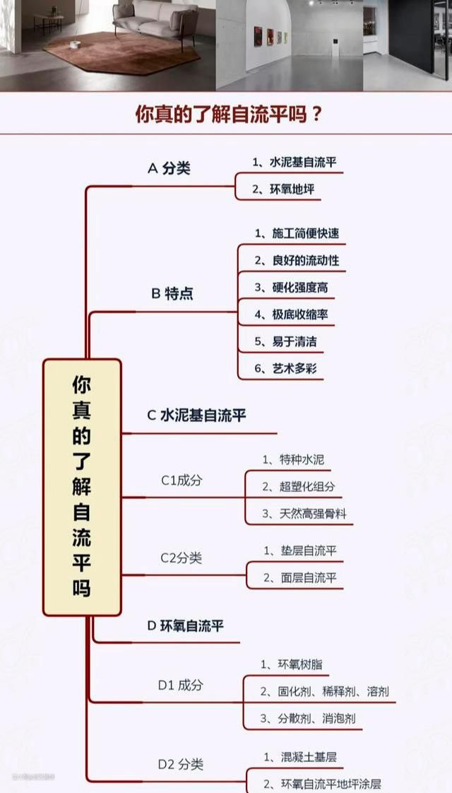 从上文中,我们知道自流平可分为:水泥基自流平和环氧自流平,那在这些基础上,还会有哪些类别呢?大家继续往下看: