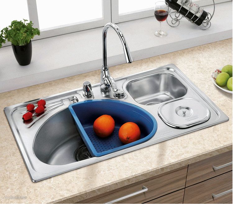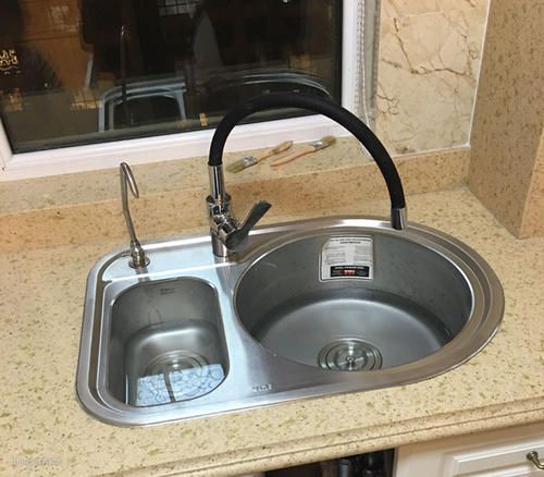 2、圆形水槽:圆形水槽内部使用空间比方形水槽小,常见的有单盆水槽和双盆水槽设计,加入小厨盆的圆形水槽款式较少见。