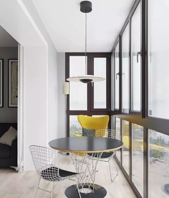 有室外就有室内,通过一个隔断门就可以无形中创造一个小型走廊式的休闲阳台出来。面积有限的情况下,放几个舒服的椅子平时出来晒晒太阳,人间天堂啊!