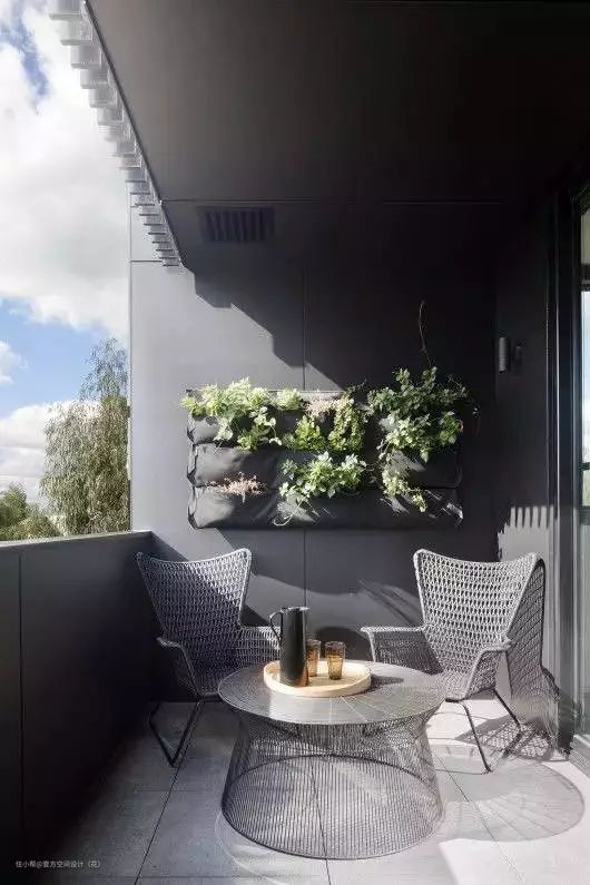 室外的阳台如果有屋顶是最容易大展拳脚的设计,避开了很多会因为下雨刮风导致不能摆放的问题。