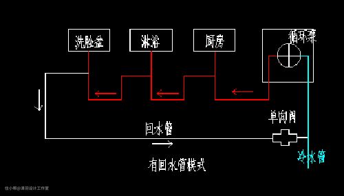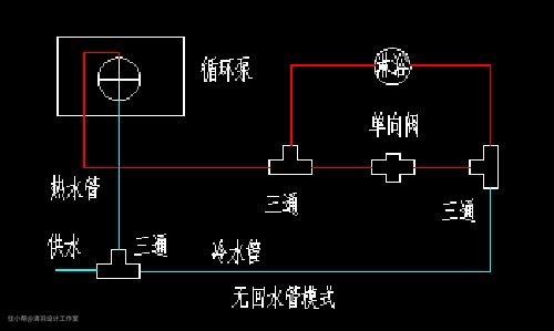 家庭中未装有回水管时,需将单向阀安装在最远端用水点的热水管和冷水管连接处,也可以构成一个回水循环。循环功能启动后,热水经单向阀流入冷水管,再由冷水管回到热水器内,从而实现即开即热。