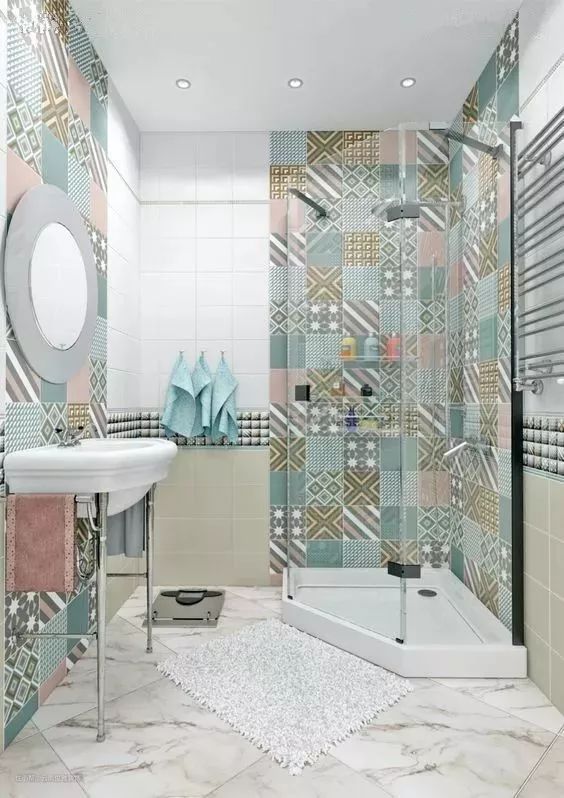 淋浴房的形状有好几种,比如上图所示的钻石型淋浴房对于面积的要求就比较低,而且造价也不会很高,适合绝大部分的家庭。