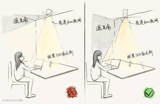 右边女孩坐在灯具的遮光角区域内,看不到灯具里面的光源,没有眩光,也就不刺眼,俗话说“不是太亮了,而是太直接”