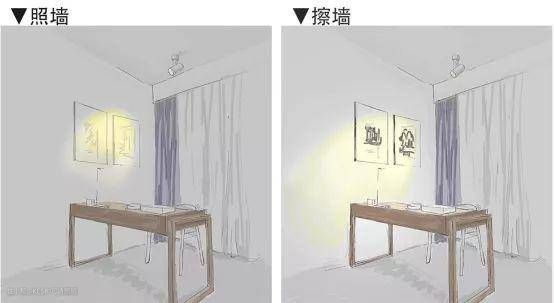 调节原则是:擦墙不照墙,控制遮光角,避免眩光。