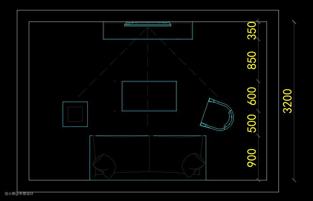 各部分尺寸大致分别为:900宽沙发,500宽过道(沙发与茶几之间),600宽茶几,850宽过道(茶几与电视柜之间),350成品电视柜。
