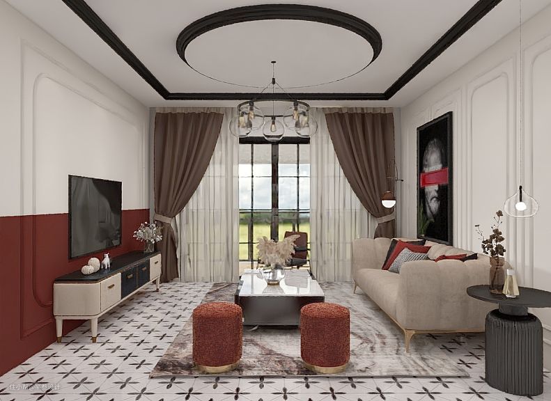 想要使用成品电视柜时让客厅空间看起来更丰富,则可以在墙面造型或颜色搭配上下功夫。利用造型线条、软装可以营造出更具设计感的客厅空间。