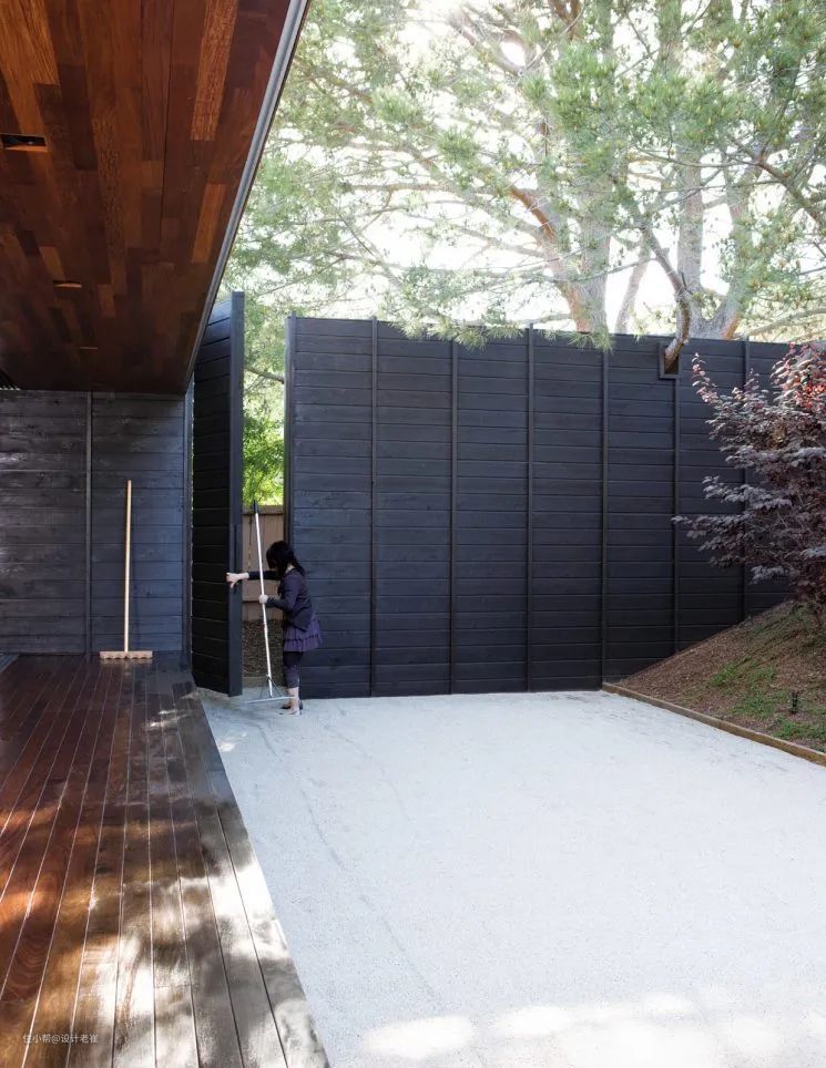 在日本,烧杉木通常是跟白色灰泥结合用于壁板,在不同的使用区域上会选用不同的处理方式。另外,烧杉木不一定是纯黑色的,就像上面介绍的。它可以刷涂和染成各种饰面,不仅能用于墙面,家具上也可以使用。