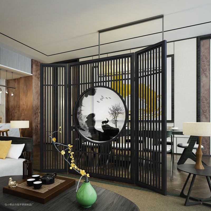简而言之,新的中式不锈钢屏风既继承了古代屏风的优雅气质,又融合了现代装饰的简约需求。各种室内外高档豪华房屋装修都采用新中式风格金属屏风来装饰。