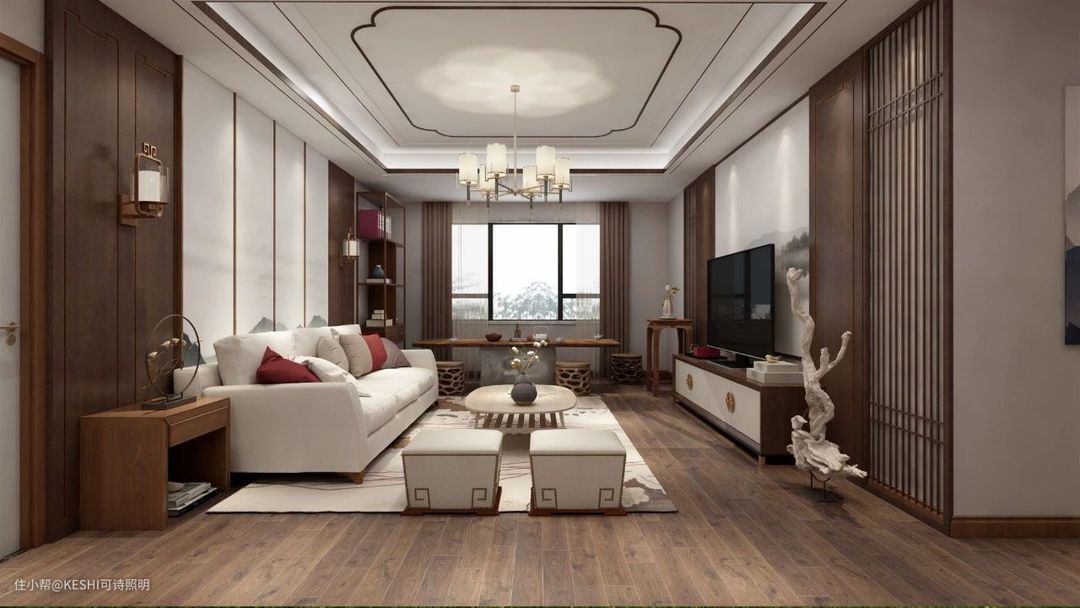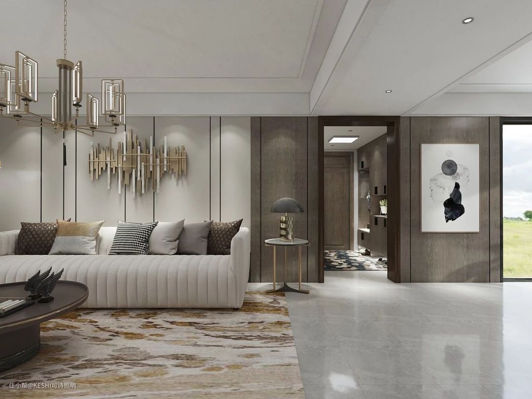 客厅的基础照明一定要保证光线的照度均匀,尤其是在使用了主灯的情况下,一定要避免整个客厅空间内上下亮度差异过大,亮度不均就会使客厅显得过于昏暗,令人产生不适感。