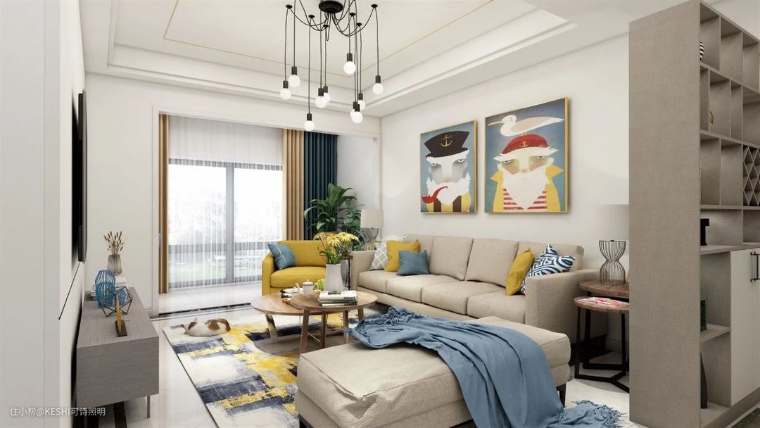 另外,为了保持客厅空间内的照度均匀,在灯具的安装位置上也需要注意,主灯若选用的是吊灯造型,可根据客厅高度来确定吊灯的垂吊高度,高度低于2.6米的客厅,则不宜选择过于繁复华丽的吊灯,同时垂吊高度不宜过低,否则会产生压抑之感。