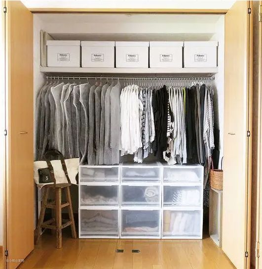 比如多买些防尘袋对衣服进行遮盖,实用不影响整洁;