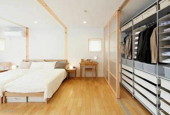 但日本的衣柜设计其实很简单,一个板、一根金属杆就能组成衣橱,