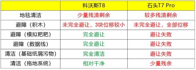 当然,这个表我们要理性看待。考虑到清洁的频次在测试的时候并不高,空间不算开阔等,因此这个结果仅供参考。只能说,在本次测试的条件下,T8的功能层面上表现相对更优异。