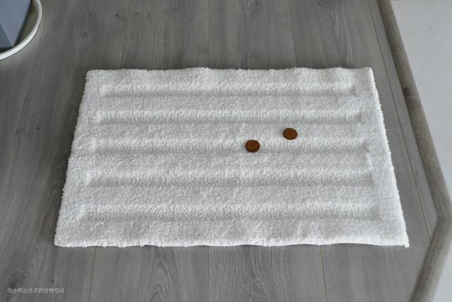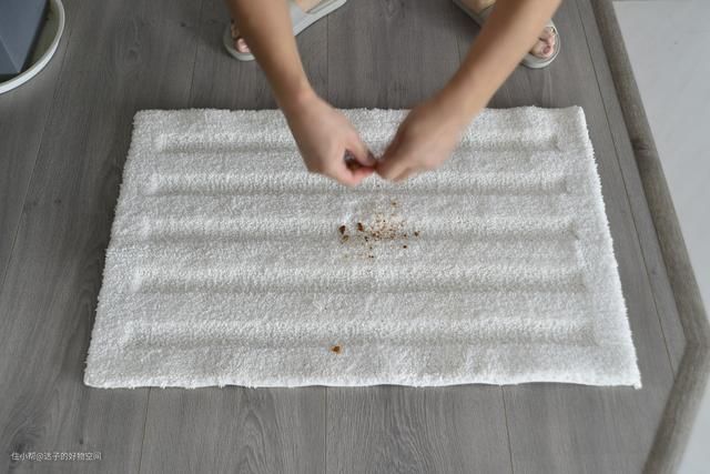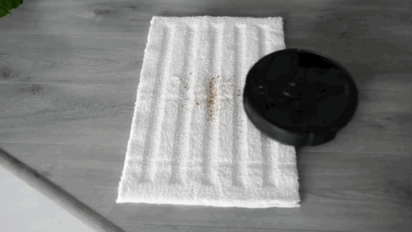 这块地毯其实对于扫地机器人是有难度的,因为造型不能纯平而是像减速带一样凹凹凸凸的。每次测试我将1块饼干捏碎到地毯上,模拟吃饼干掉落碎屑的情况。