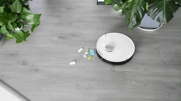 T7 Pro不仅没有避障,还顺走了几块积木~~~哎。所以,面对积木,两台机器都没有满分过关,但可以看到面对蓝色积木以及白色栅栏造型的积木,T7 Pro直接带走,T8则保留了白色栅栏造型的积木。综合衡量最后的结果,T8的表现略好一些。