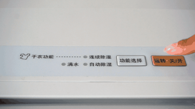 运转关/开键一按即可打开电源,再按一次即可切掉电源;功能选择键可切换连续除湿或自动除湿两个模式。