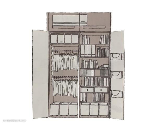 其实我们不一定把它用作单一的衣柜,可以把它作为全屋的"综合收纳柜"。