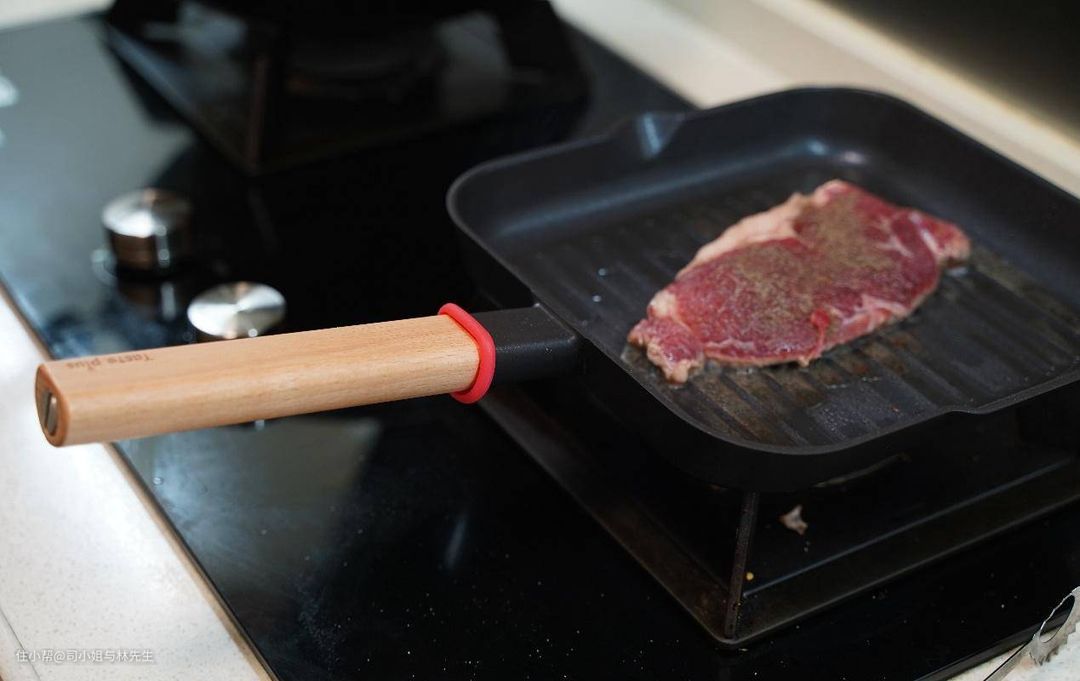 ▲家里的之前的一套牛排锅使用久了已经挂了,被我丢掉了,现在林先生都是使用料理锅,但是料理锅的发热速度慢,所以煎牛排并不是非常的合适,而我重新物色了悦味的这款牛排锅。