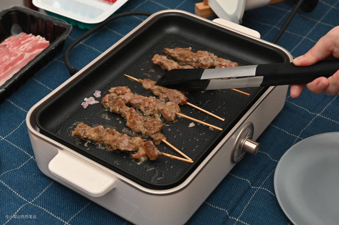 在家吃烧烤真的一本满足,就是油温高了会有些油烟,注意控制下温度,适盒A4 Box的加热很快,受热也比较均匀。