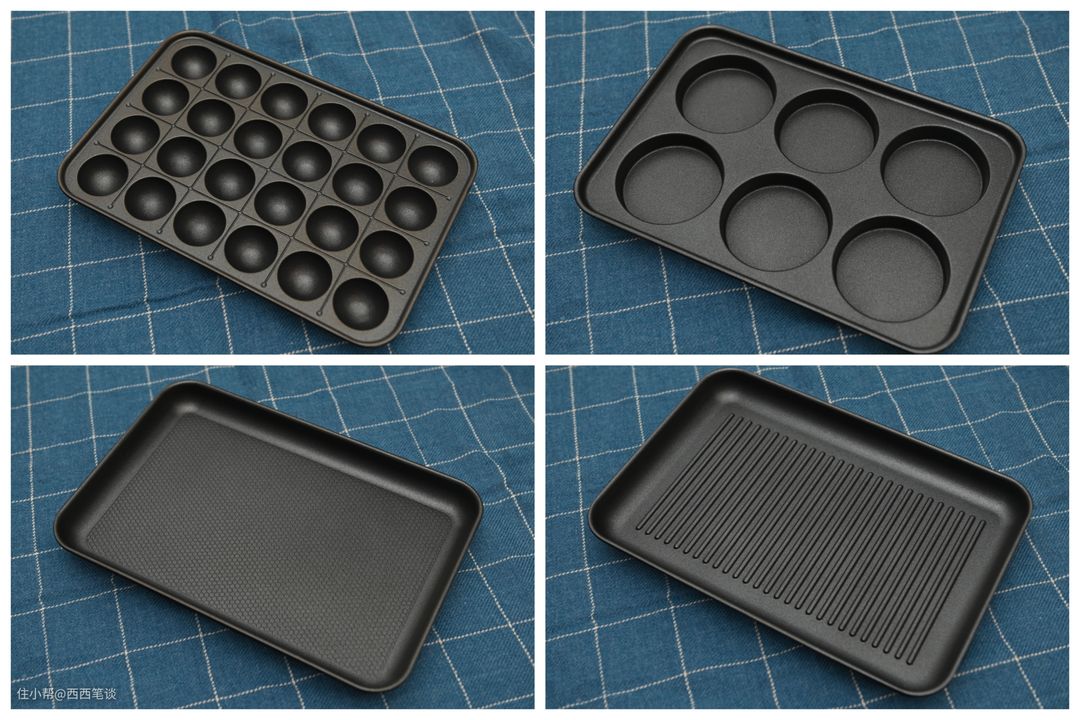 4个料理盘都采用了特氟龙不沾材质,烹饪时不沾锅,清洗也十分方便,料理盘相当厚实,特别是章鱼丸子那个盘,我太太直呼好重。