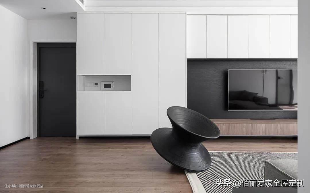 有些户型进门后在大门侧边有面与大门垂直的墙,在位置足够的情况下,装了鞋柜又不会顶住大门开门的话,那么就可以把鞋柜与大门垂直地布置,这样空间利用也是非常的实用精致。