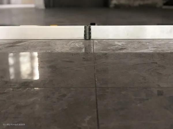 Tip:利用靠尺,从背光的方向看,看看有没有透光,如果没有透光那就说明地砖是平整的。