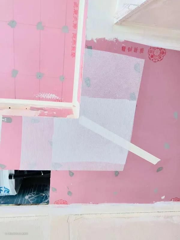 为防止石膏板吊顶拐角开裂,同时用牛皮纸及海吉布粘贴,可有效减少石膏板开裂机率