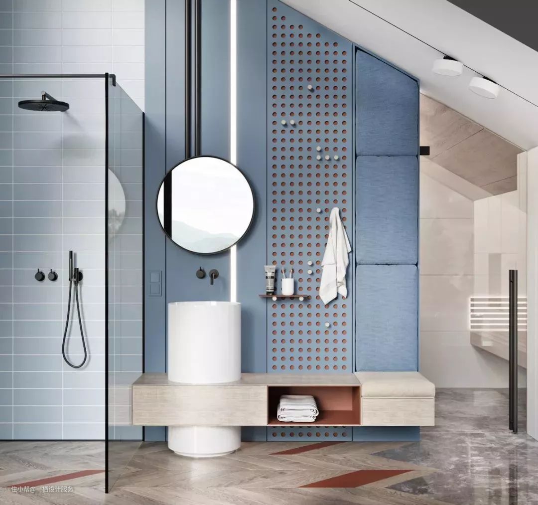 如果你的卫生间够大,就可以选择安排阻断墙来隔离区域,这样可以使卫生间的空间感更强,也能更好地保护隐私。