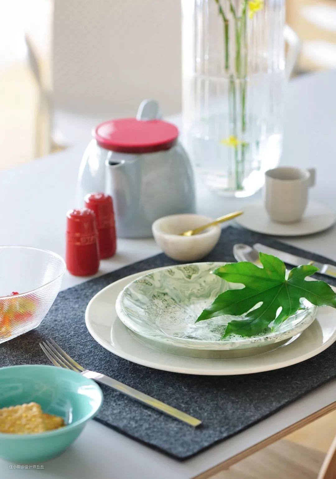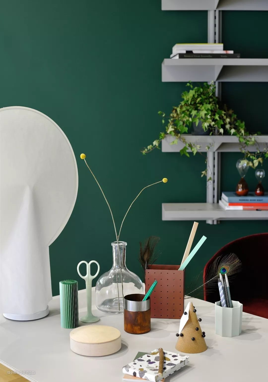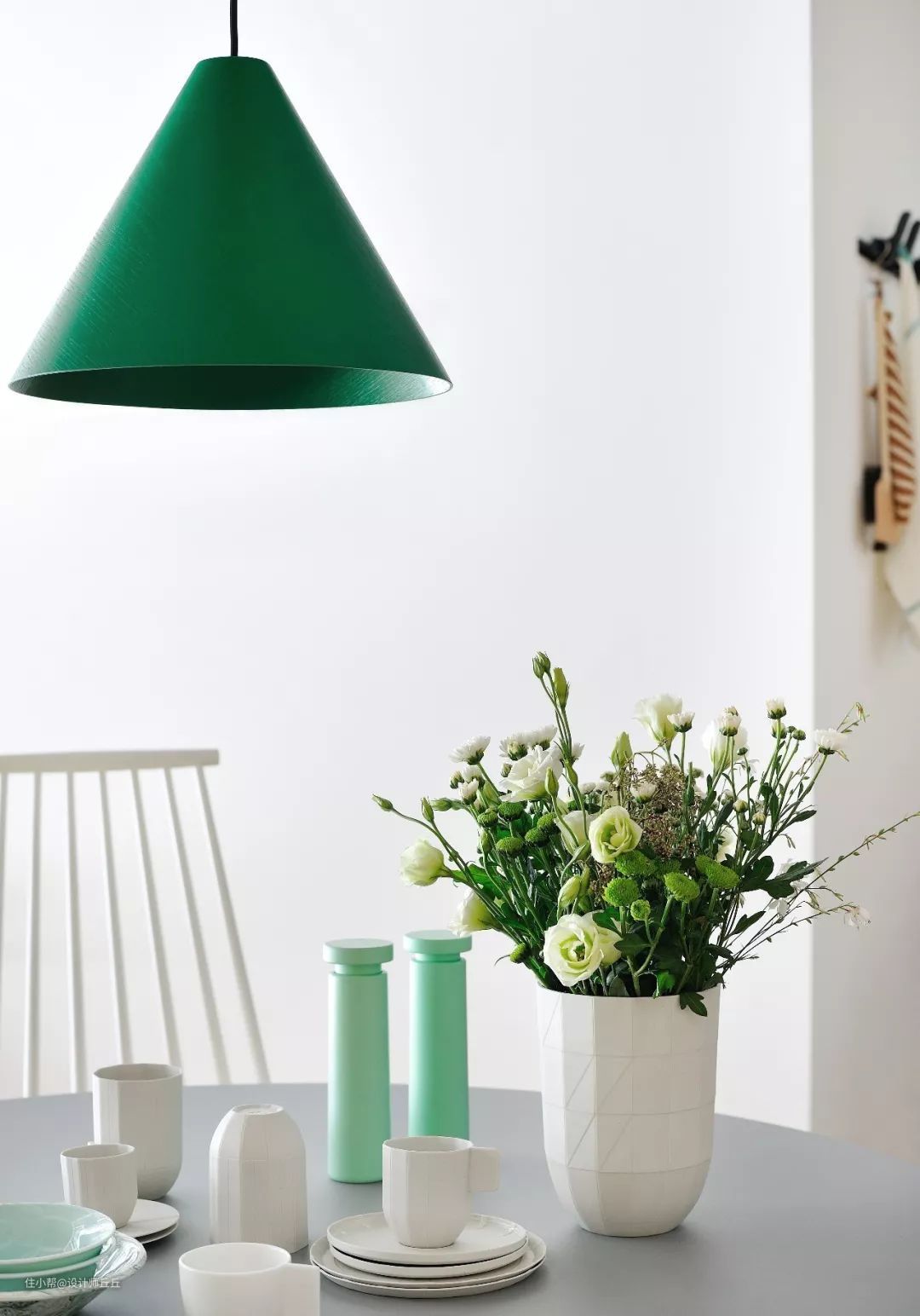 除了墙面的大面积绿色运用,在一些小物的选择上,一抹清新的绿色,也能成为点睛的一笔。白色的墙面搭配各种饱和度的绿色,带来或简约或清新的清凉感受。