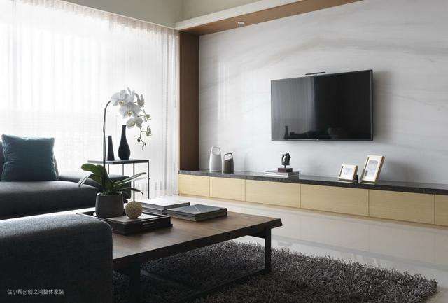 选择大理石用作电视背景墙可以提升整个家的档次,适用于轻奢、极简、现代简约等风格。