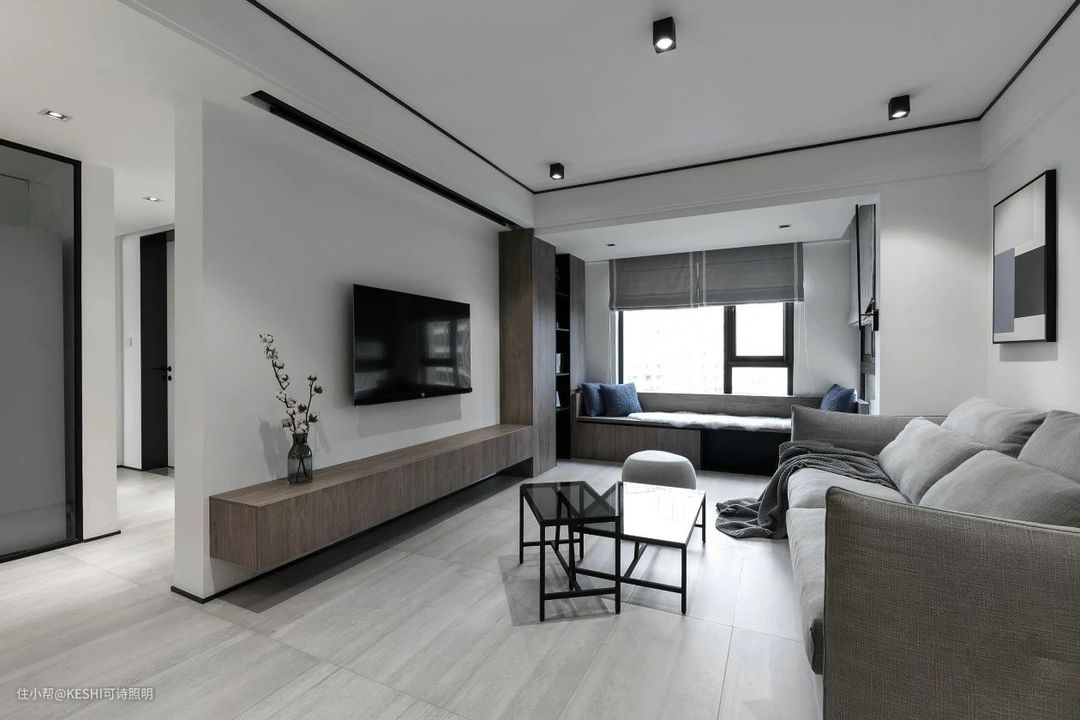 如果不采用大平顶,局部吊顶相对是最好的选择。一来能够将中央空调或天花板其他不美观的地方完全隐藏,二来能够增强空间的层次感,搭配无主灯设计能够对功能区进行有效的划分。