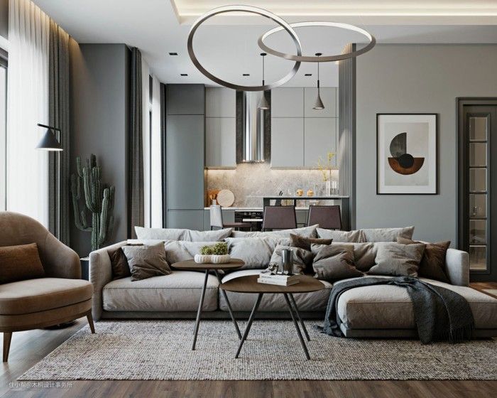 国内一般由于以前的户型受限,沙发往往都是靠墙摆,时间久了,就有了这种惯性思维。要不尝试下改变?越来越多的人都已经接受了开放式厨房,客厅换个布局又何尝不可呢?
