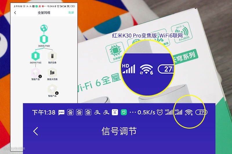 值得一提的是,我618旗舰最新购入的红米Redmi K30 Pro变焦版也成了上网的香饽饽,毕竟这是我们家唯一支持WiFi6的手机,屏幕上出现WiFi6的标志还是蛮让人有优越感的。