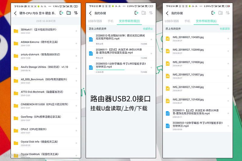 还可以在每台360WiFi6全屋路由器背后的USB口上插U盘,查找、共享设备资料来说非常方便,APP上直观体现上传下载和文件列表,与NAS相比应该只差个极限速度了。
