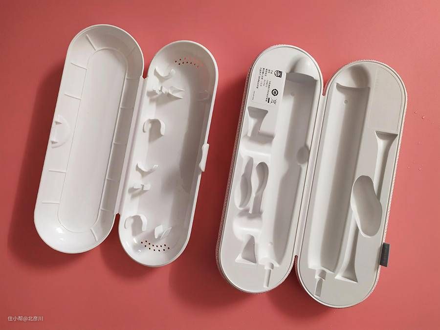 比如说,无线充电设计,照顾到了家用和出差用的场景,这是我那百元电动牙刷所给不了的;其次是产品的质量,无论是充电玻璃杯还是旅行充电盒,在手感和材质方面都能够感受到用料非常的扎实,而百元电动牙刷所配置的旅行盒不能带充电不说,薄薄的一层塑料,让人感觉很廉价。