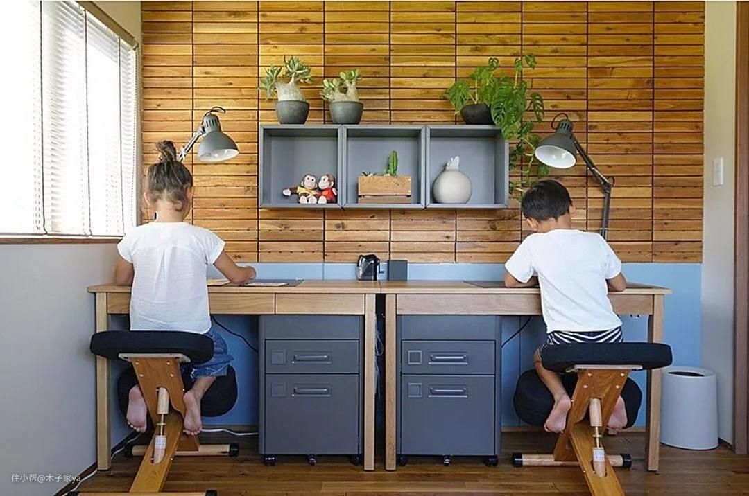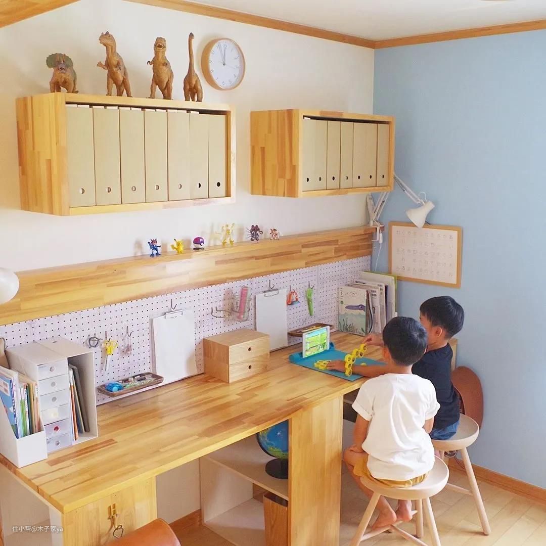 家有两个小孩,可以参考书桌这样设计哦,使用空间不大,但是却非常好用。