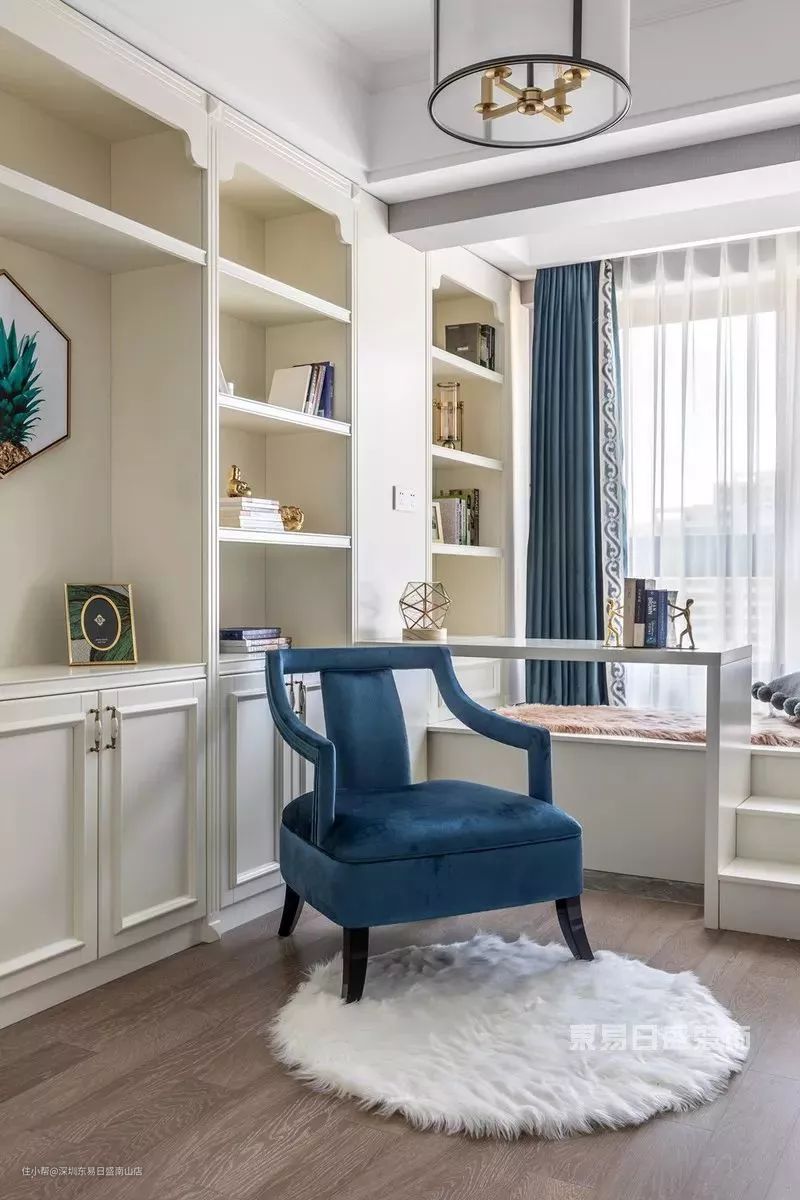 书房:书房可选择木质百叶帘、隔音帘或素色卷帘