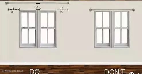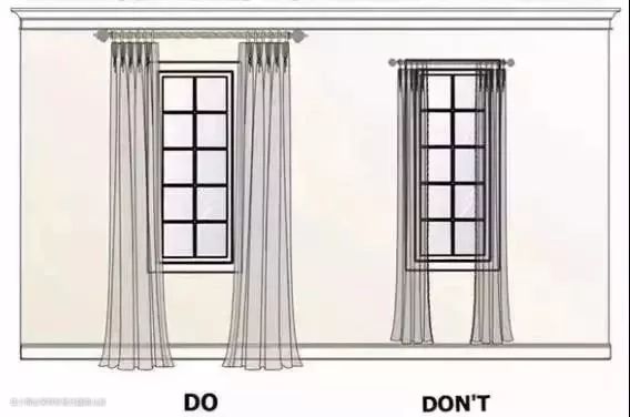 不要瞎节约那几寸布,窗帘挂高几厘米就能让层高显高几厘米,就像女生穿大长裙能显高是一个道理,从高于窗框上沿的13~18cm处开始悬挂效果较佳。