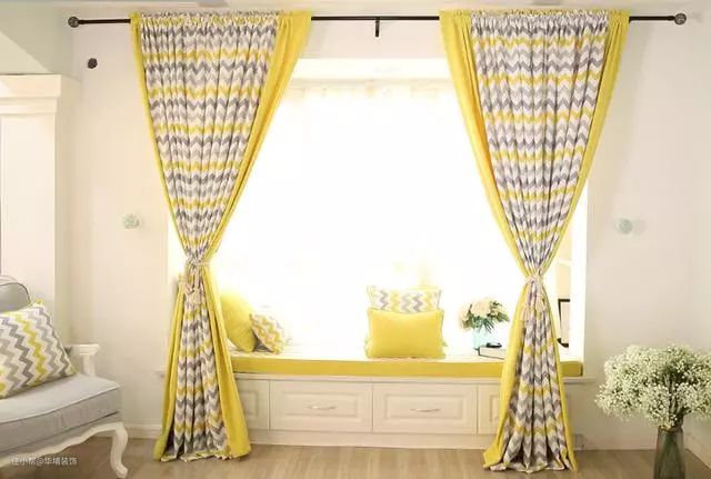 方法二:想要活泼一点的风格,可以窗帘加彩边。或者选择波点、条纹、形状、花色等图案都是不错的。遵循的选色原则也是与纯色窗帘的一样。