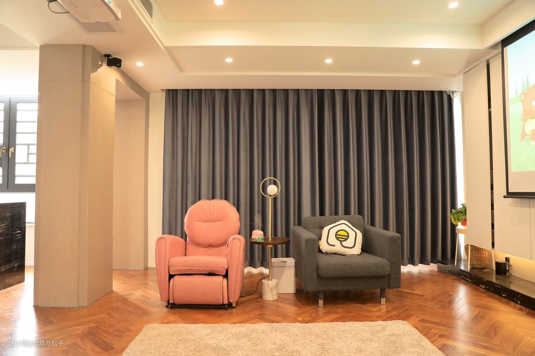按摩椅和宜家兰德克纳中间的茶几灯在客厅吸睛力十足。虽然他家售后很糟,无线充电基本是摆设。好在东西基础功能实用,造型不错,很符合我家的轻奢味道。