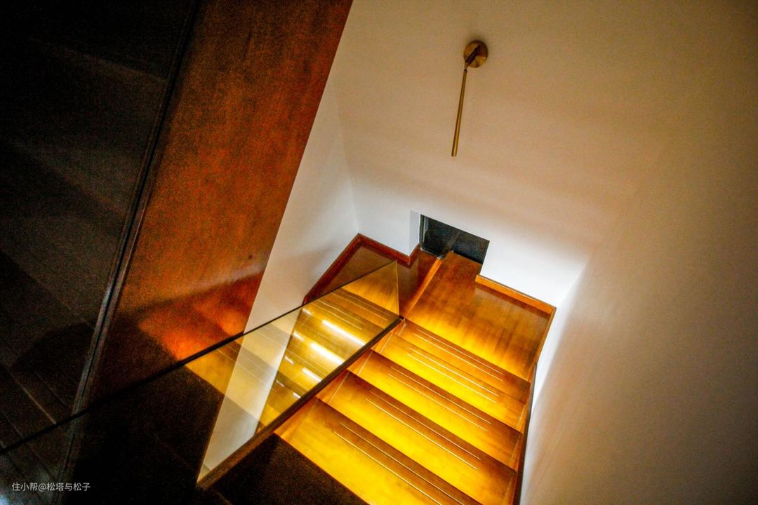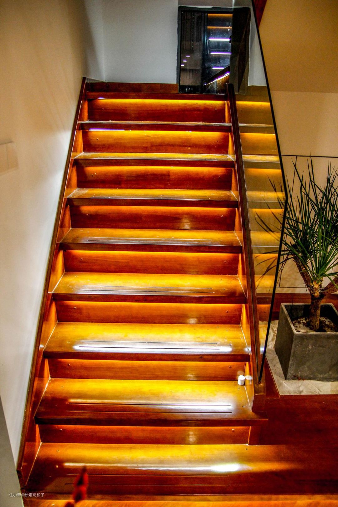 楼梯踏步下的暖黄光灯带,夜晚的的楼梯有点小梦幻。