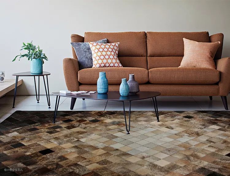 比起纯毛地毯,牛皮地毯的价格相对较低,没有长长的毛绒也更方便日常清洁与保养,即使是沾上了污渍,也可以直接用湿布擦拭。