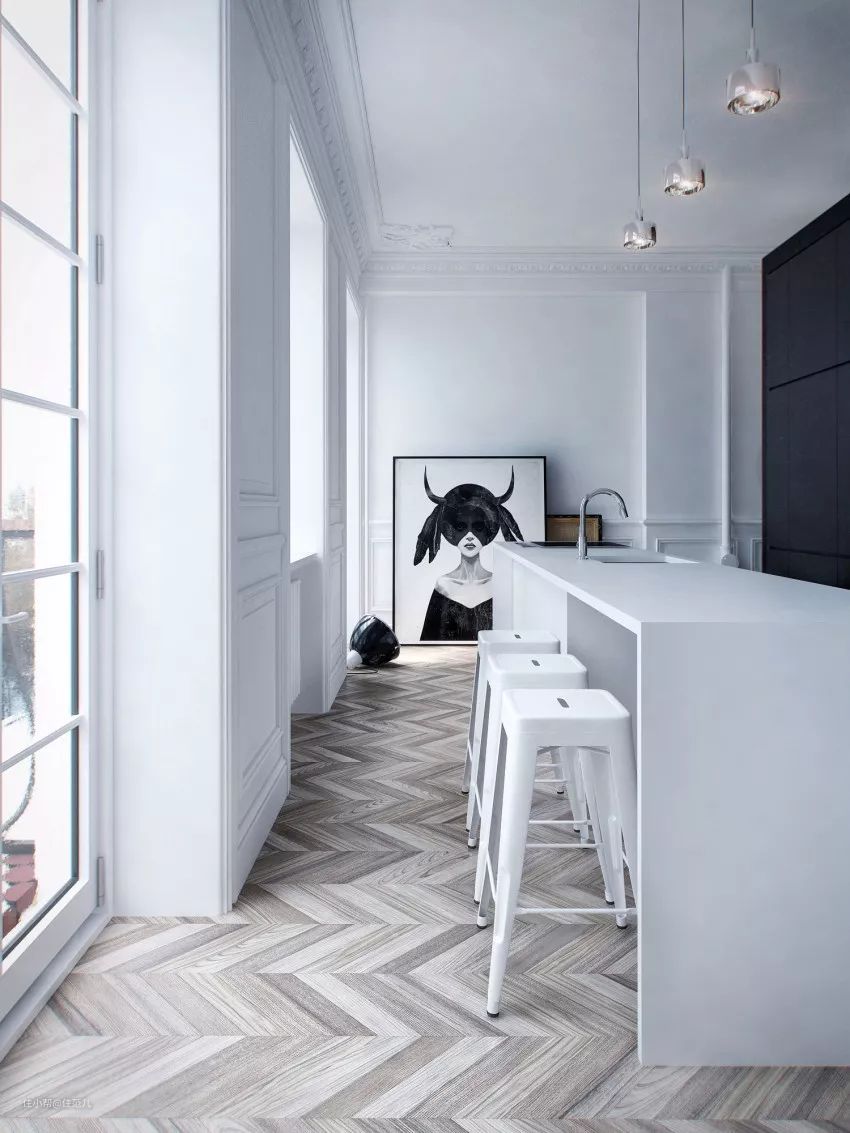 也可以选择同样只有黑白色系的画,将克制感进行到底。