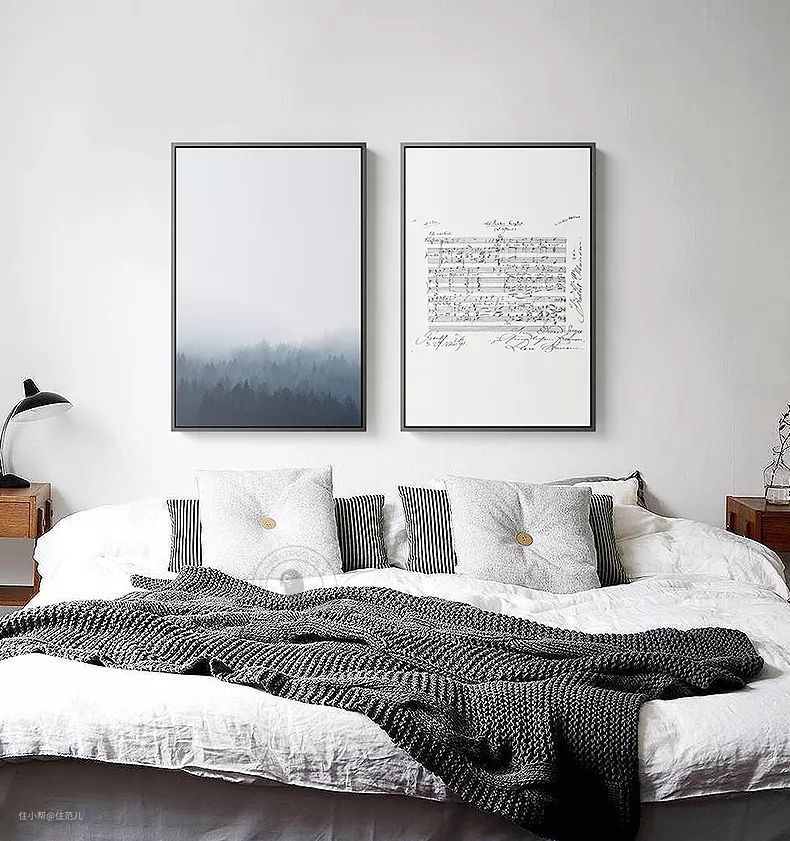 有些风格的家居就是自带百搭属性,像是北欧风、简约风,重实用、轻装饰,在挂画搭配上反而可以随心挑选。
