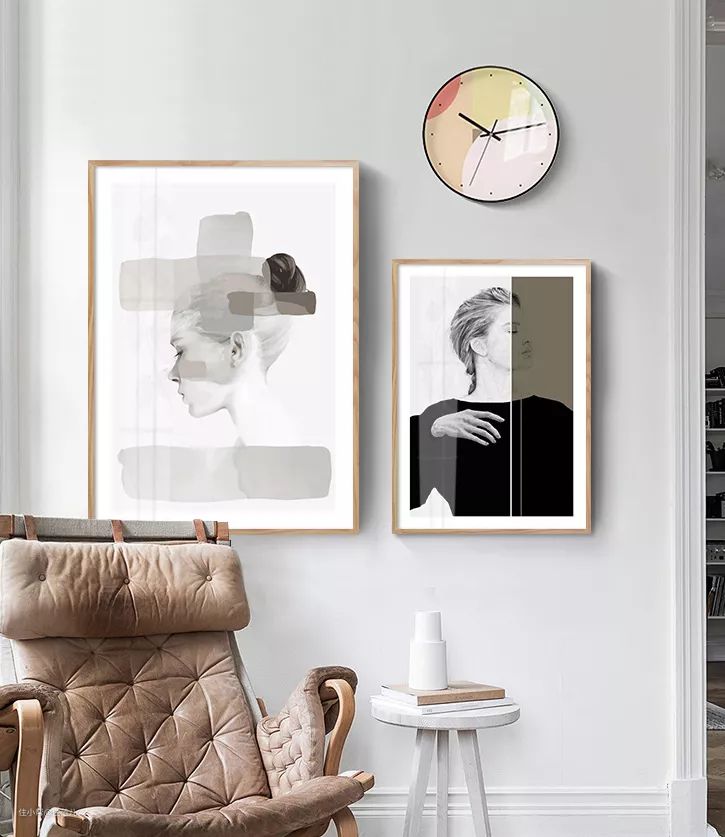 黑白可以同步也可以混搭。原木风的家具搭配原木的画框,才能更加顺眼。