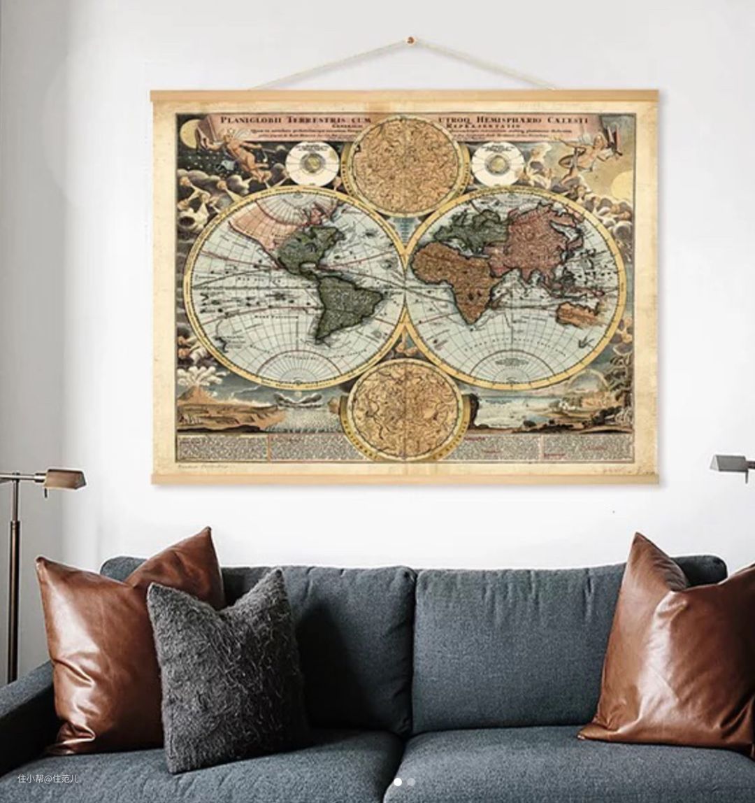又或者去淘一些旧版的地图回来,可以装框悬挂也可以直接用无痕胶粘在墙上,复古中带着一点小酷劲儿,别提多带感了。