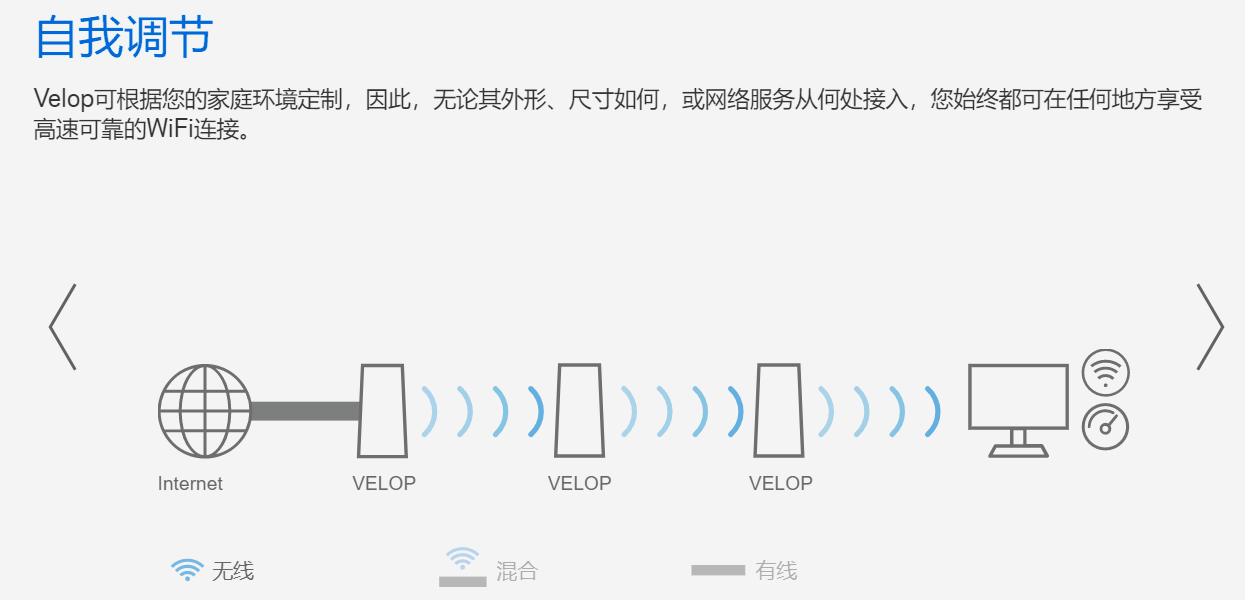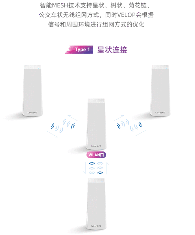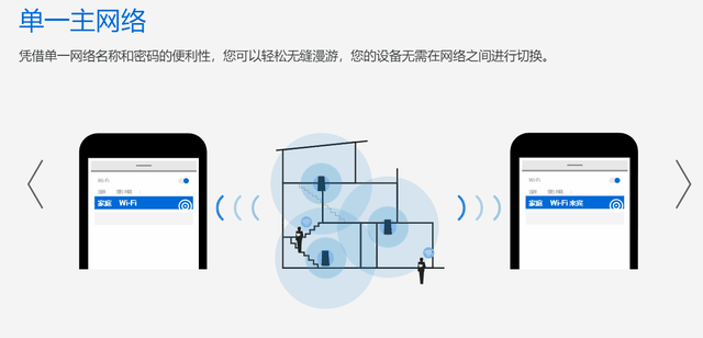 Mesh的优势是:有线/无线均可,WiFi信号无缝切换,覆盖范围更广