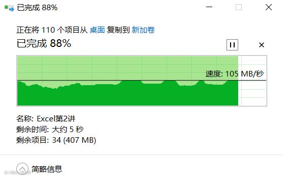 有线连接,写入速度为111MB/s,读取速度为105MB/s。