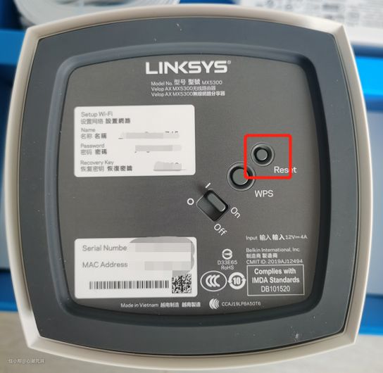 开箱完毕,就进入到配置环节。linksys MX10600配置非常简单,只需要用到节点底部的reset键就可以搞定,实现免APP免网页快速组网设定和添加子节点。
