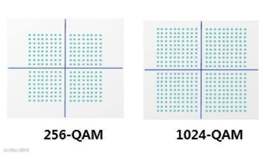 说人话就是相比256-QAM(256个样点),1024-QAM(1024个样点)单次8bit变成单次10bit,容量提升了25%,能够承载更多的信息。